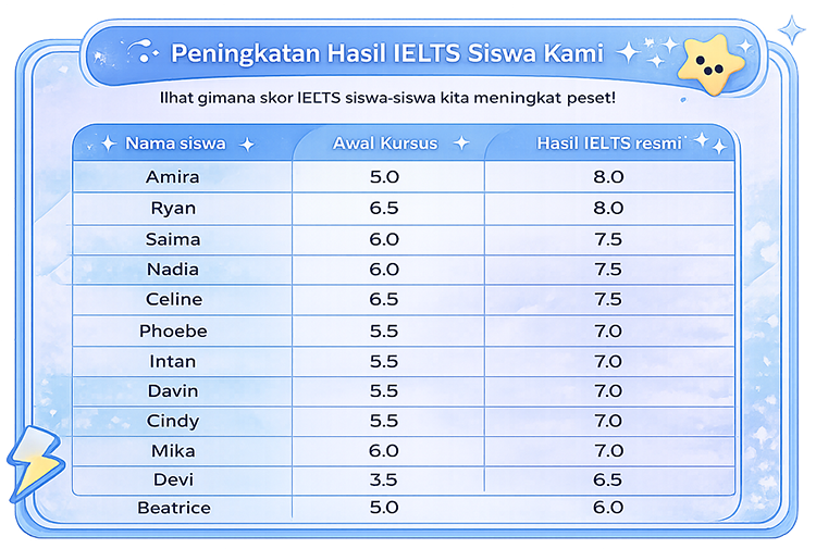 Garansi mendapat nilai IELTS yang diinginkan (untuk kelas private. Syarat & ketentuan berlaku)
